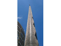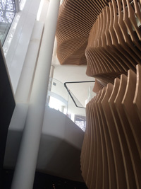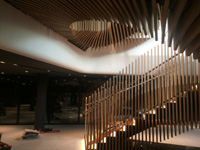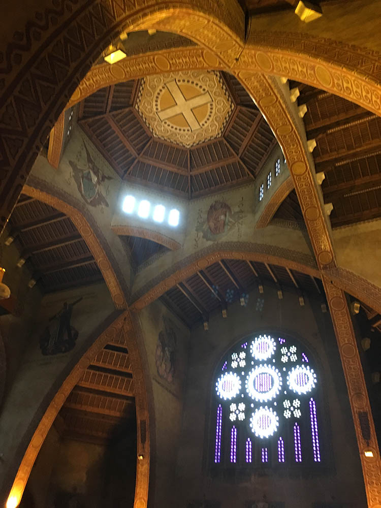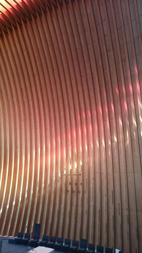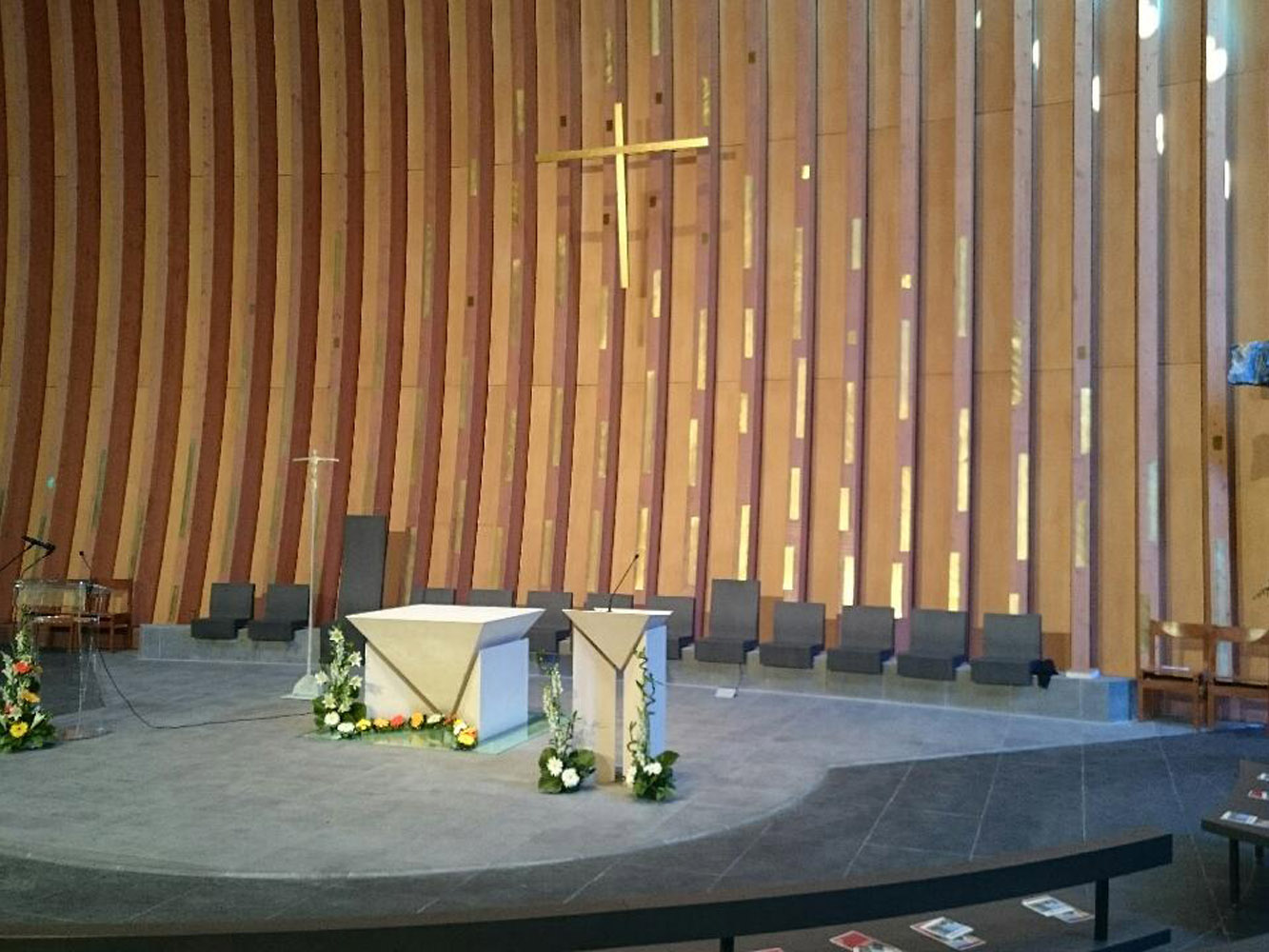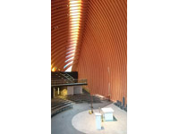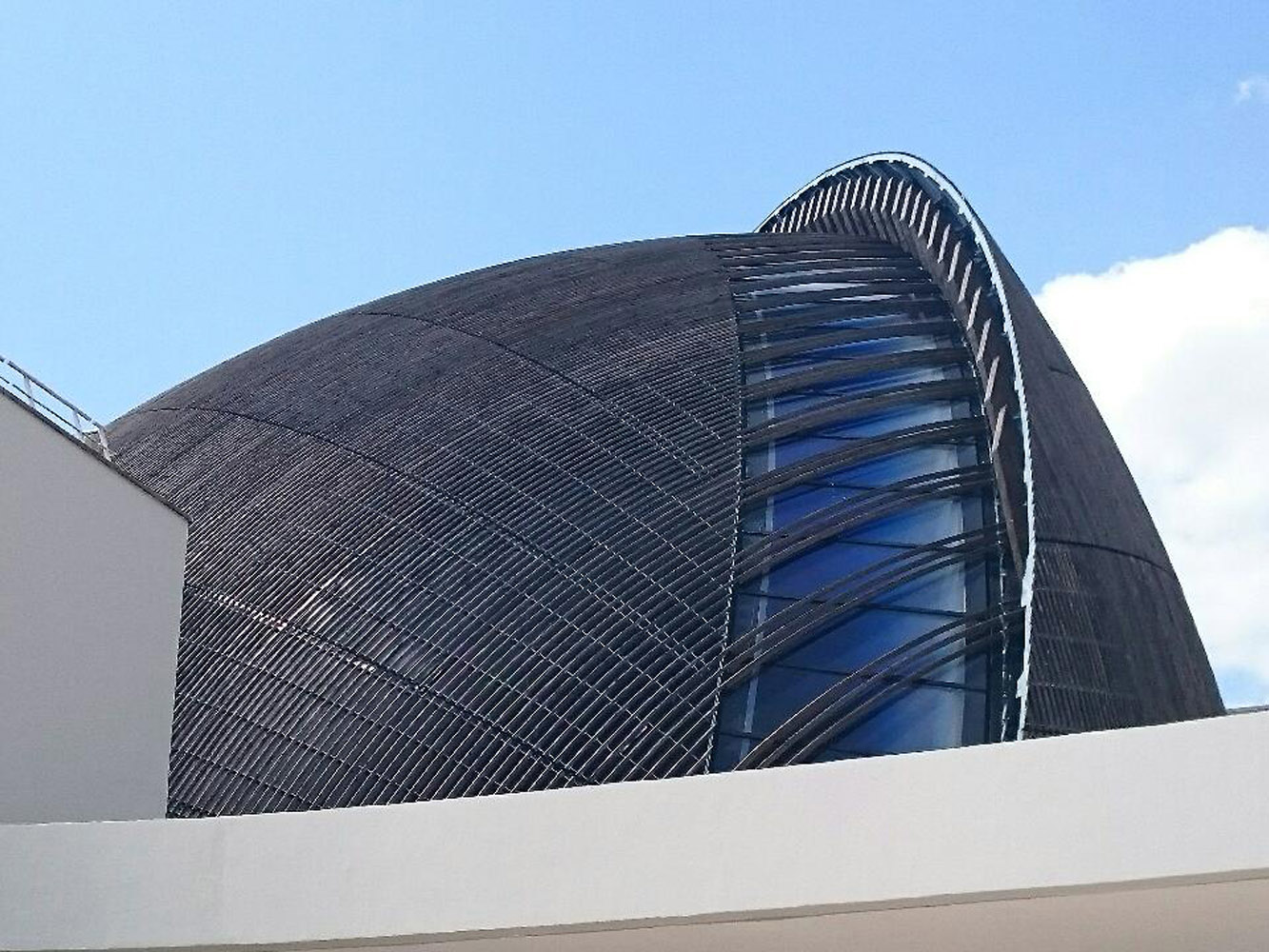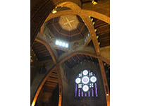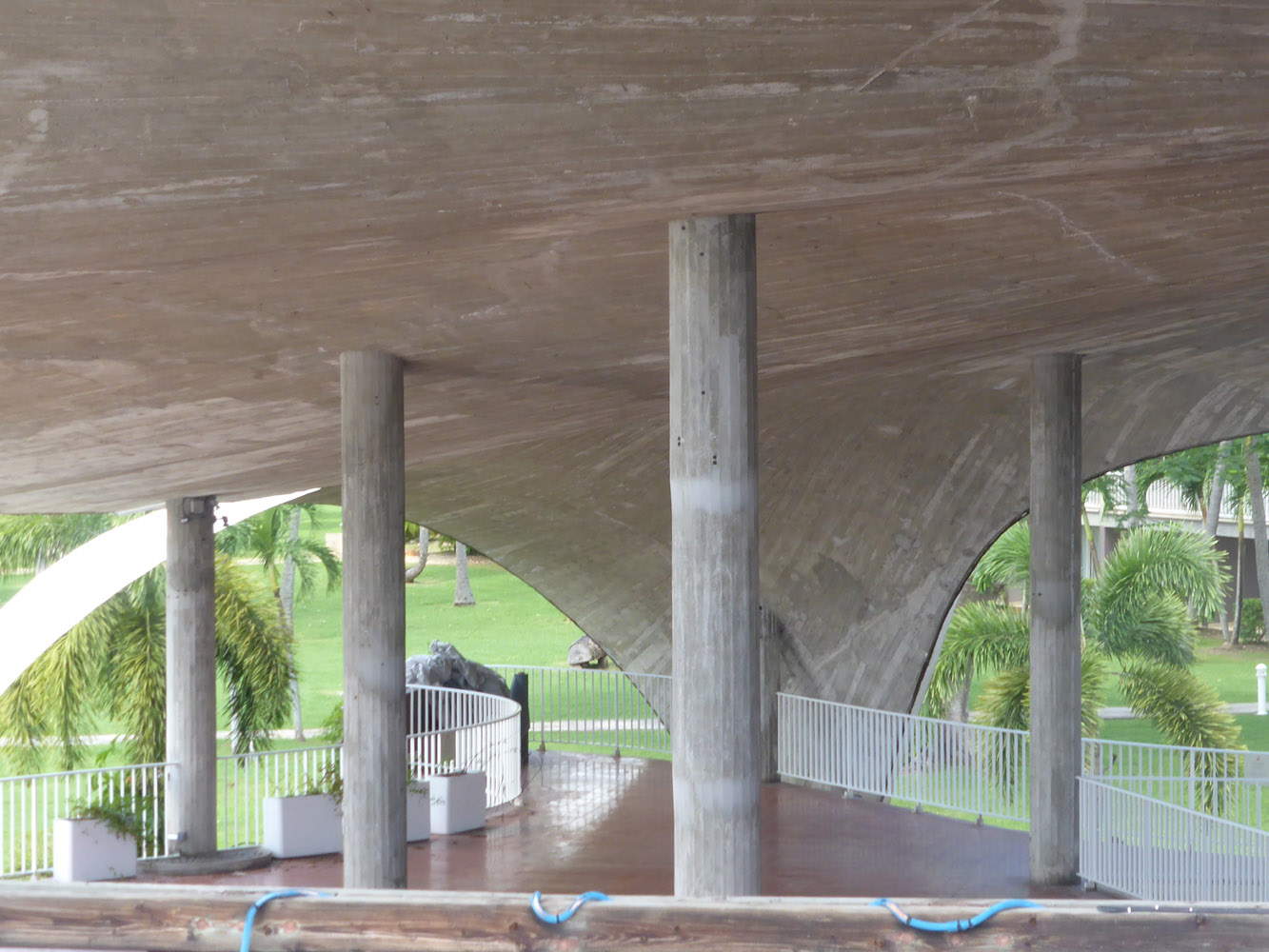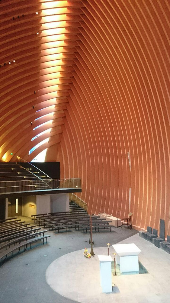 Structure porteuse en béton armé remarquable, composée de 4 grands arcs en béton armé délimitant une nef unique (22.70 m de portée pour une hauteur à la clé de 18m). A leur croisée, les grands arcs portent une coupole octogonale qui culmine à 27m de hauteur.